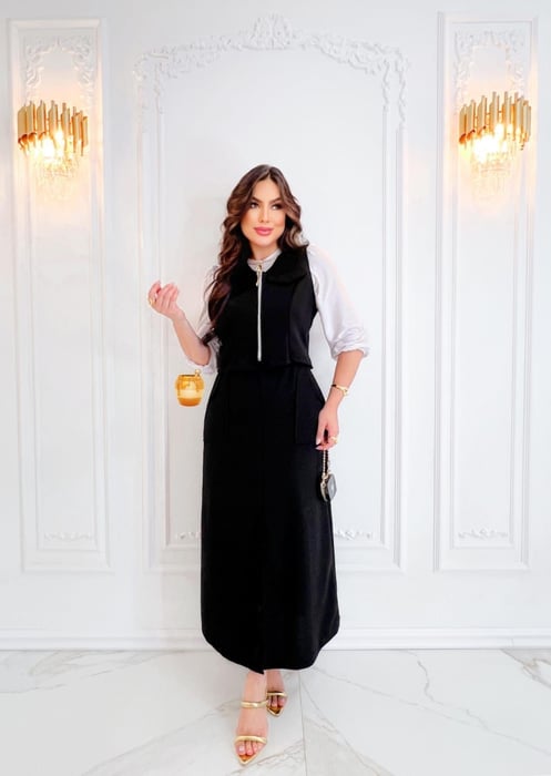 Tamanho único, vestindo do 40 ao 44. Casaco e saia: malha crepe Dior (com elastano e sem transparência) Blusa de dentro: malha Suede (com elastano)